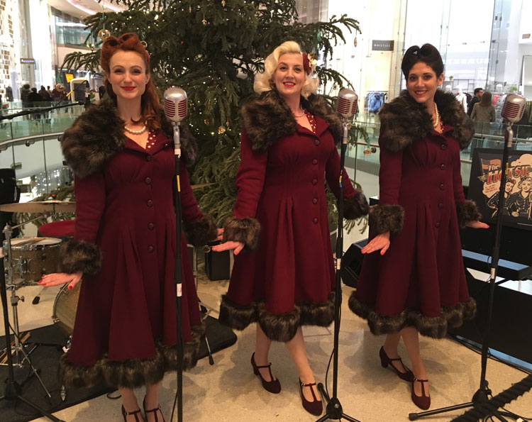 Who needs the Andrews Sisters when these gals are in town? Jaw-Droppingly authentic our 40s Vocal Harmony Trio has performed on BBC Radio, at Ronnie Scott’s, Ascot Racecourse, Tall Ships Regatta and main stage of Twinwood Festival and successfully spread some Christmas cheer at London’s iconic Waterloo Station.
