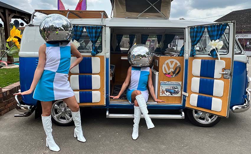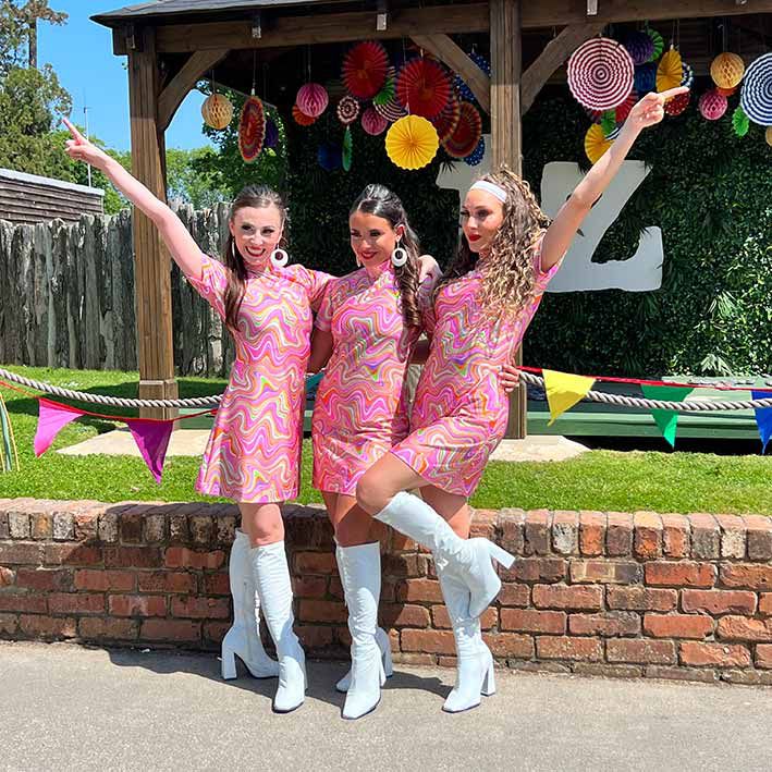 Our team of performers can change costumes into alternative 60s-themed outfits for a great value 60s entertainment package