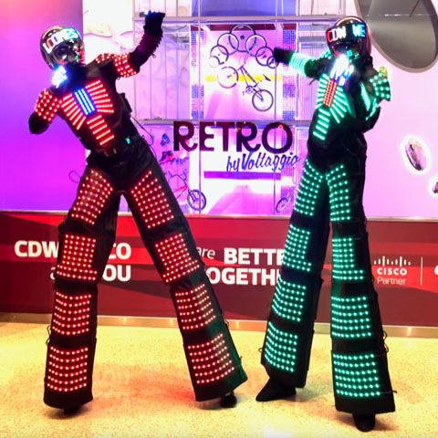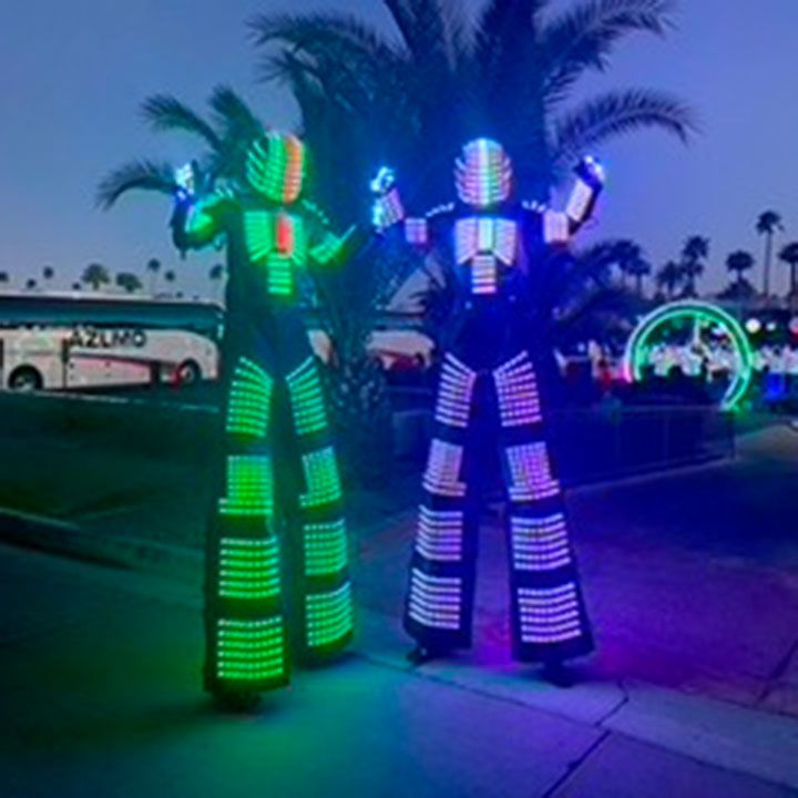 WOW audiences with our Las Vegas based 9ft LED Robot Stilt Walker! Roaming robots are the perfect way to catch the crowds attention and our Las Vegas robot is truly eye catching. Towering over your guests, the giant LED robot will interact and engage with audiences to create a high-impact and lasting impression. With realistic movements and a bright LED robot suit, our Las Vegas robot stilt walker will be a spectacle everyone will want to see at your next event!
