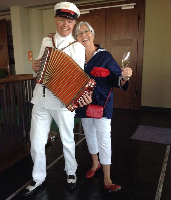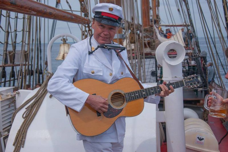 With a long ancestry of boating, our artist often dresses in a sea captain's uniform with a hat but can wear alternative dress to suit your event