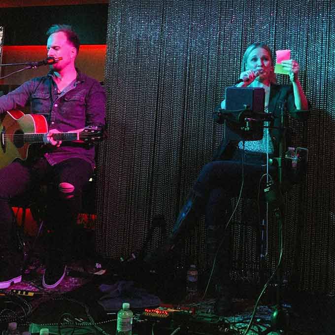 Acoustic power duo with a rich sound of two lead vocalists combined with a unique set-up of guitar, bass, drums, and percussion played and looped