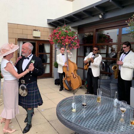 " [They were] absolutely perfect. Everything that the profile information promises and more. We wanted a happy vibe to help get our wedding reception started and everyone loved it. They managed to make us feel very special and picked out our favourites from an impressive playlist. Would recommend them for anything from a wedding to a corporate do or an intimate family party. "