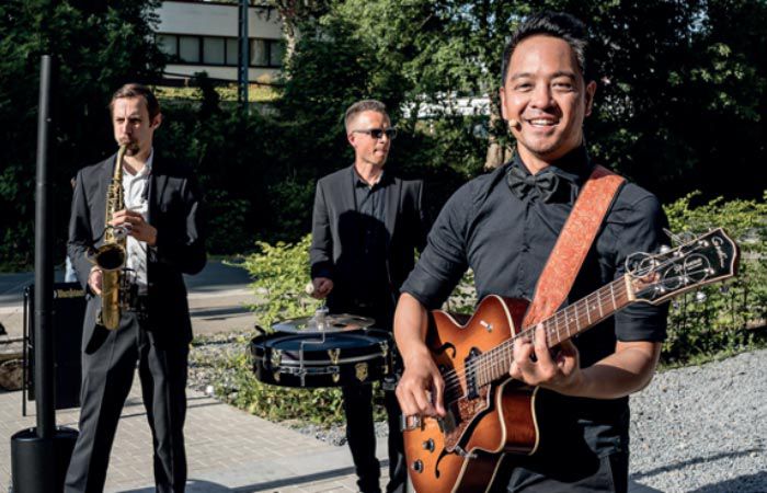 Consisting of a singer/guitarist, saxophone, drums and euphonium, our roaming band covers everything from today's top hits to old-time favourites
