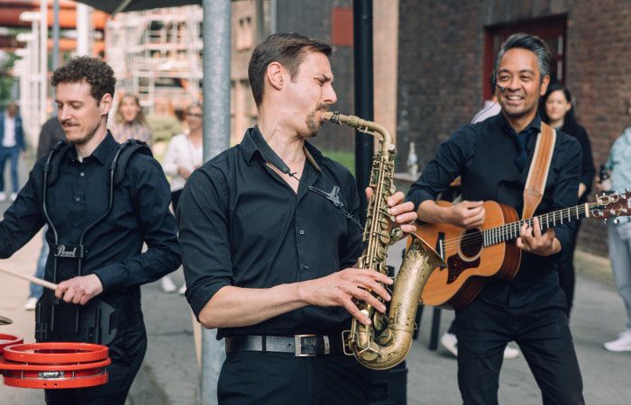 They are a great choice for live background music at ceremonies, dinners and corporate events and a highlight at any exhibition or street festival