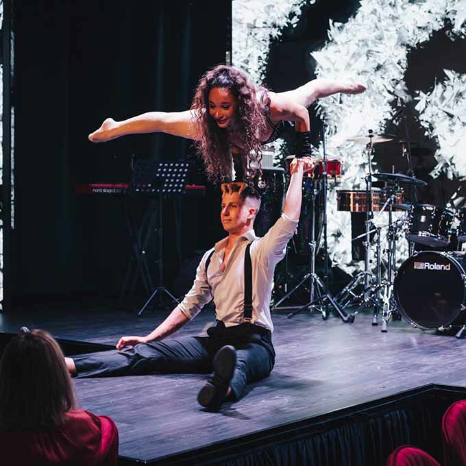 Impress your guests with a breathtaking performance by our acrobatic duo, which includes a variety of amazing lifts and unique acro tricks