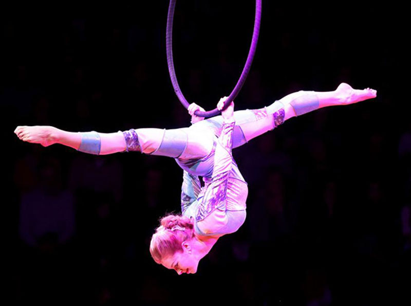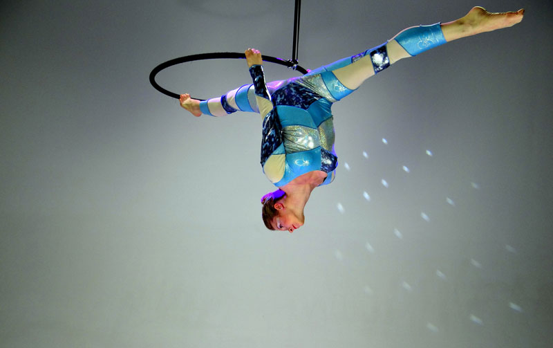 A bespoke aerial hoop dance performed by our female aerialist is also a popular option for concerts, festivals, weddings, and other special occasions. This and other of our acrobats’ acts can be executed both indoors and outdoors.