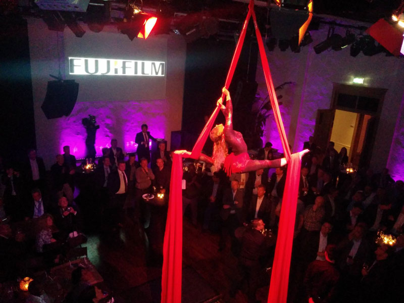 These fantastic Aerial Acrobats from Holland will elevate your event to a whole new level! Our multitalented circus artists offer a wide range of aerial shows including an aerial silks act, an aerial cyr wheel act and an aerial hoop dance!