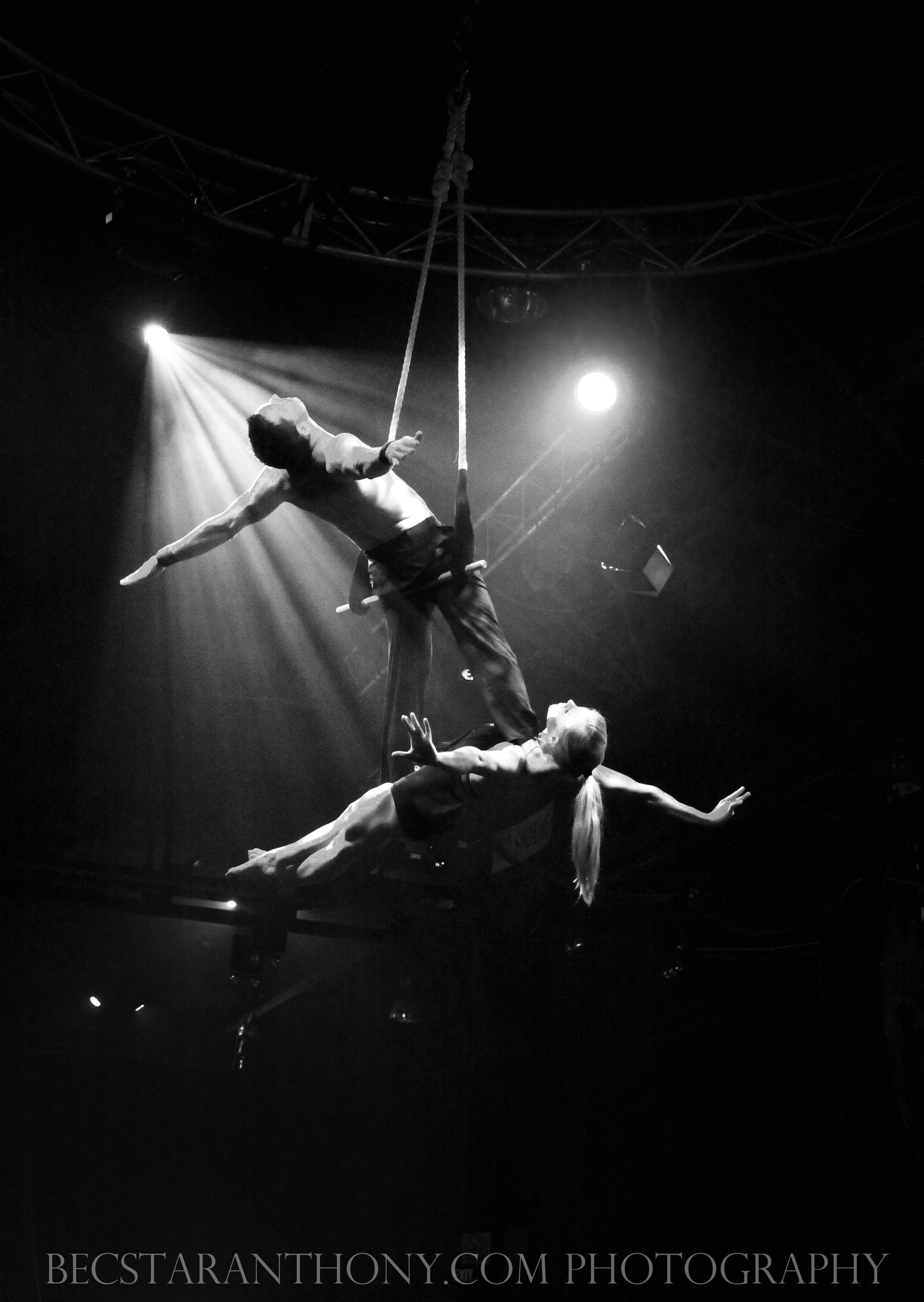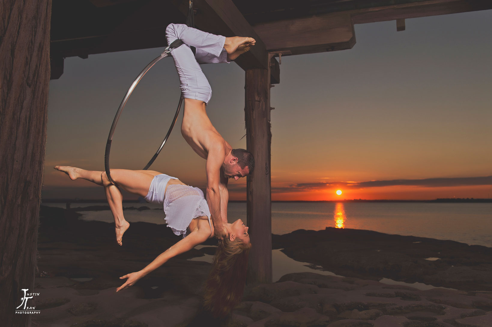 Perfect for wedding or corporate entertainment, watch them weave their magic high above you on Double Trapeze, Lyra (Hoop) or Flying Pole in a spectacular display of sensuality and athleticism. For something more down to earth have them perform one of their Adagio routines or Acro-Pole shows (their own unique blend of acrobatics and pole dancing). Partners in real life as well as on stage the chemistry is apparent in their performances and as a result their acts are always spellbinding.