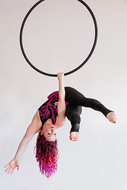 A specialist in aerial silk acrobatics, our female aerial dancer can also perform aerial hoop solos. Versatile and in constant search of new ways to express through body language, this talented Irish aerial dancer can also offer pole dance performances.
