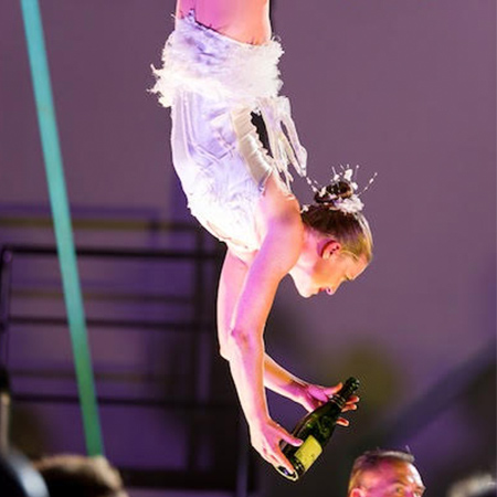 Add a unique element to your celebration with these Aerial Bartenders, sophisticated champagne aerialists who will ensure all glasses are always full.