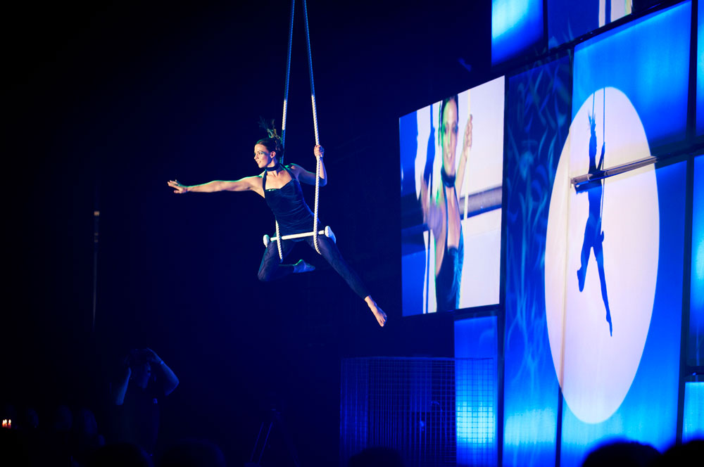 Working across both the theatre and corporate entertainment world, they perform nationally and internationally using only highly skilled aerial dance artists, to create sophisticated and elegant high impact performances.
