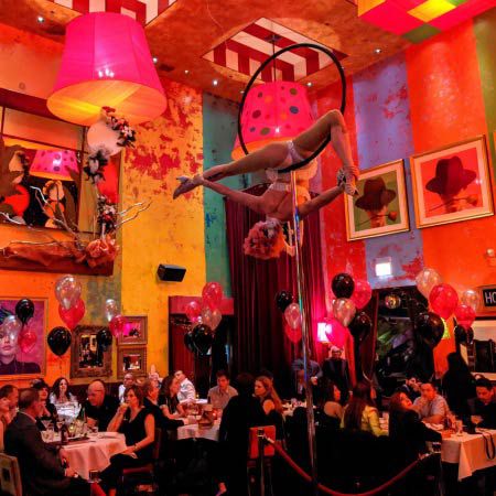 Our event aerialist customises her show to your needs and provides lollipop Lyra for venues where an aerialist cannot be suspended from the ceiling