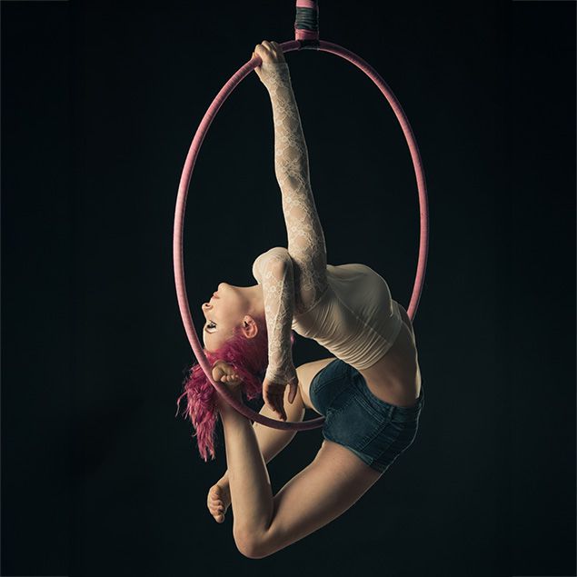 Professionally trained at École Nationale de Cirque, graduating in 2017 with a Diploma in Circus Arts and specializing in aerial hoop