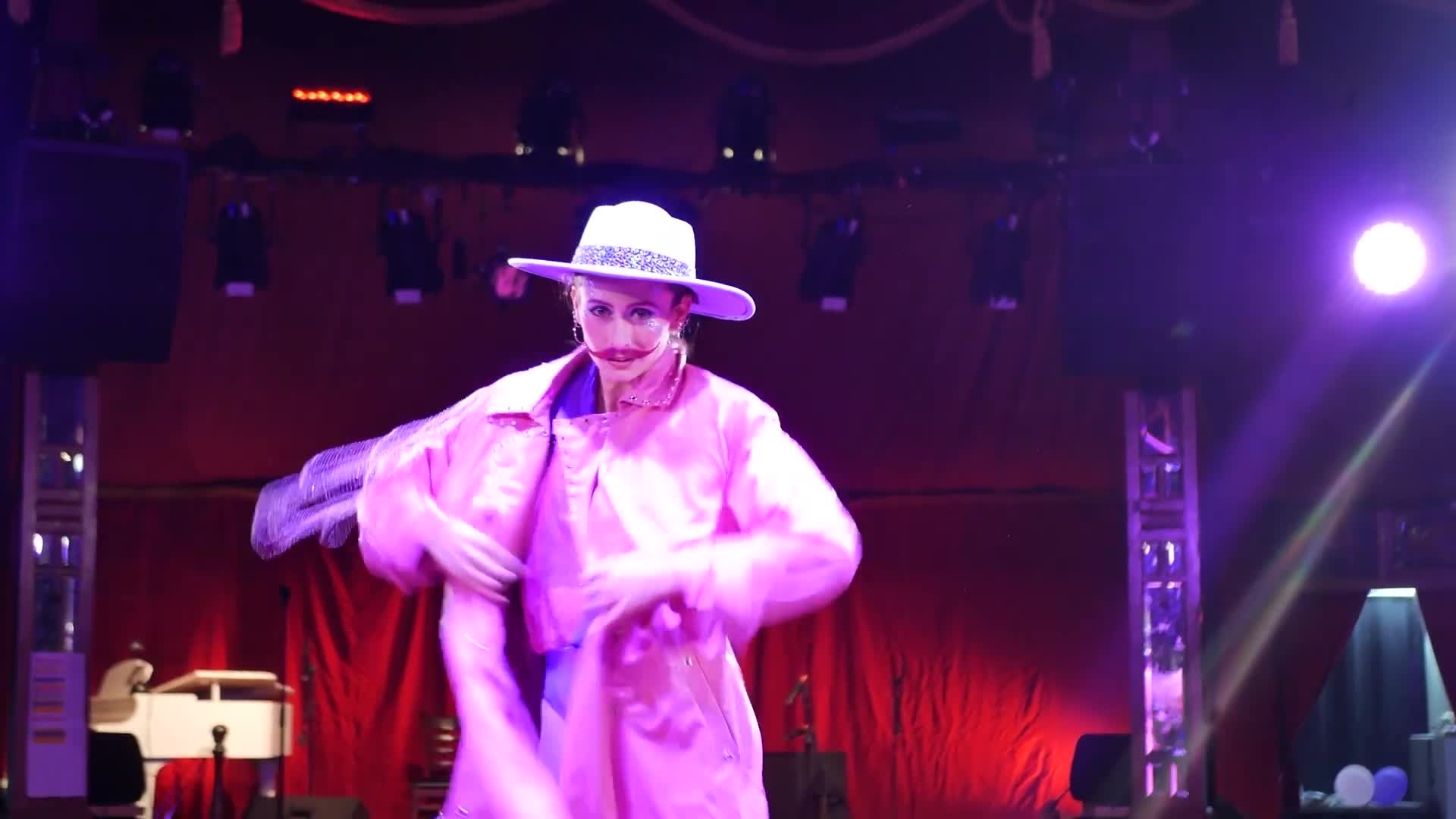 A multifaceted performing artist blending circus aerials, contortion, theatricality, and waacking street dance into breathtakingly bold performances