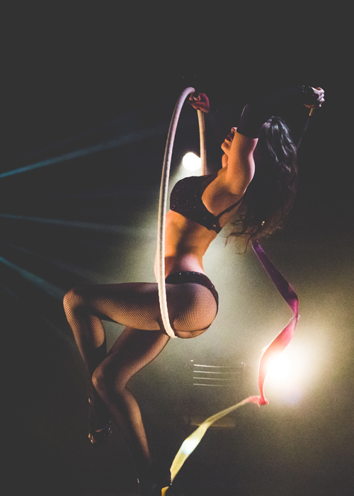 The aerial show comes from a talented cabaret performer with years of experience. Beginning her career as a winning rhythmic gymnast before entering the world of circus entertainment and becoming a burlesque performer. She has performed at some of Australia’s most esteemed corporate events, charity balls and fashion shows and even appeared on a couple of Australian TV shows.