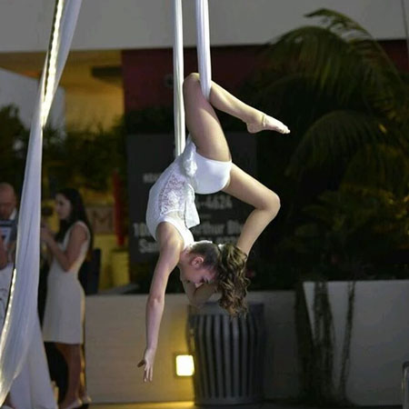 Become lost in a trance with our luxurious aerial performer from California and watch as our aerialists dance and fly high in the sky effortlessly. With an option of either aerial silks or hammock our circus performers can tailor their performance to suit every occasion.