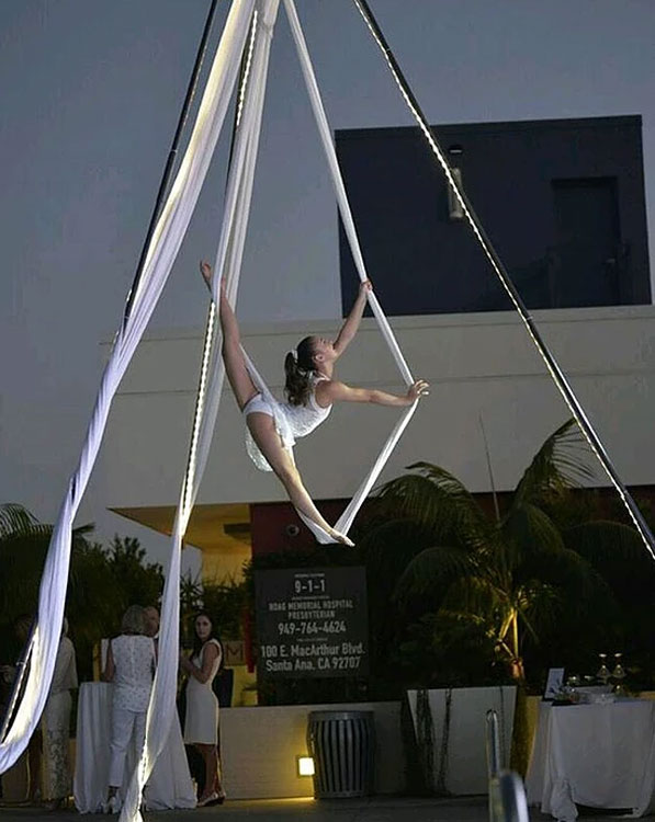 To book our Aerial Performer California contact our Entertainment Specialists today or to add more sparkle to your next event visit our Glitter Chandelier Aerialist page.