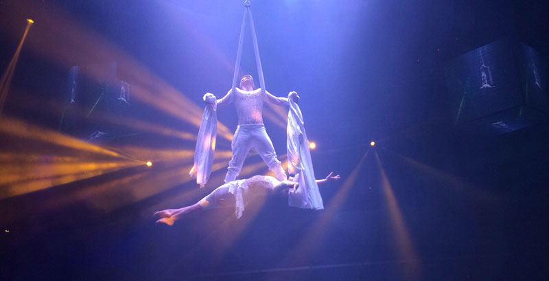 Powerful and dynamic, this Aerial Silk Show is the perfect entertainment circus experience for cruise ships, award ceremonies, private parties, corporate functions and more. These talented silk aerialists have already delighted audiences at events all over the world among which the Opening of the Olympic Games in Sochi in 2014 stands out.