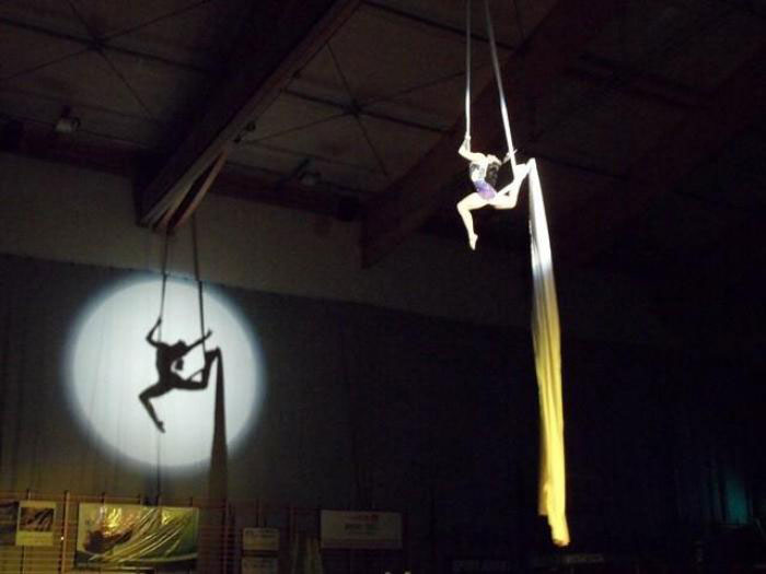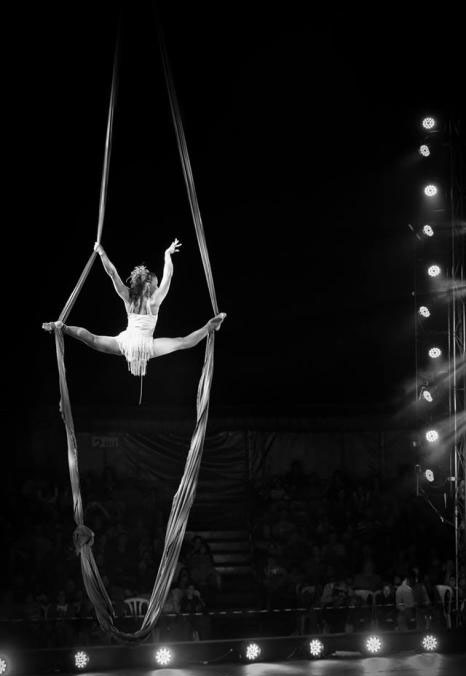Our highly successful aerial silk solo circus performer has over eighteen years of experience, specialising in water bowl, handstand contortion, aerial silk and performing as one third of an acrobatic trio show.