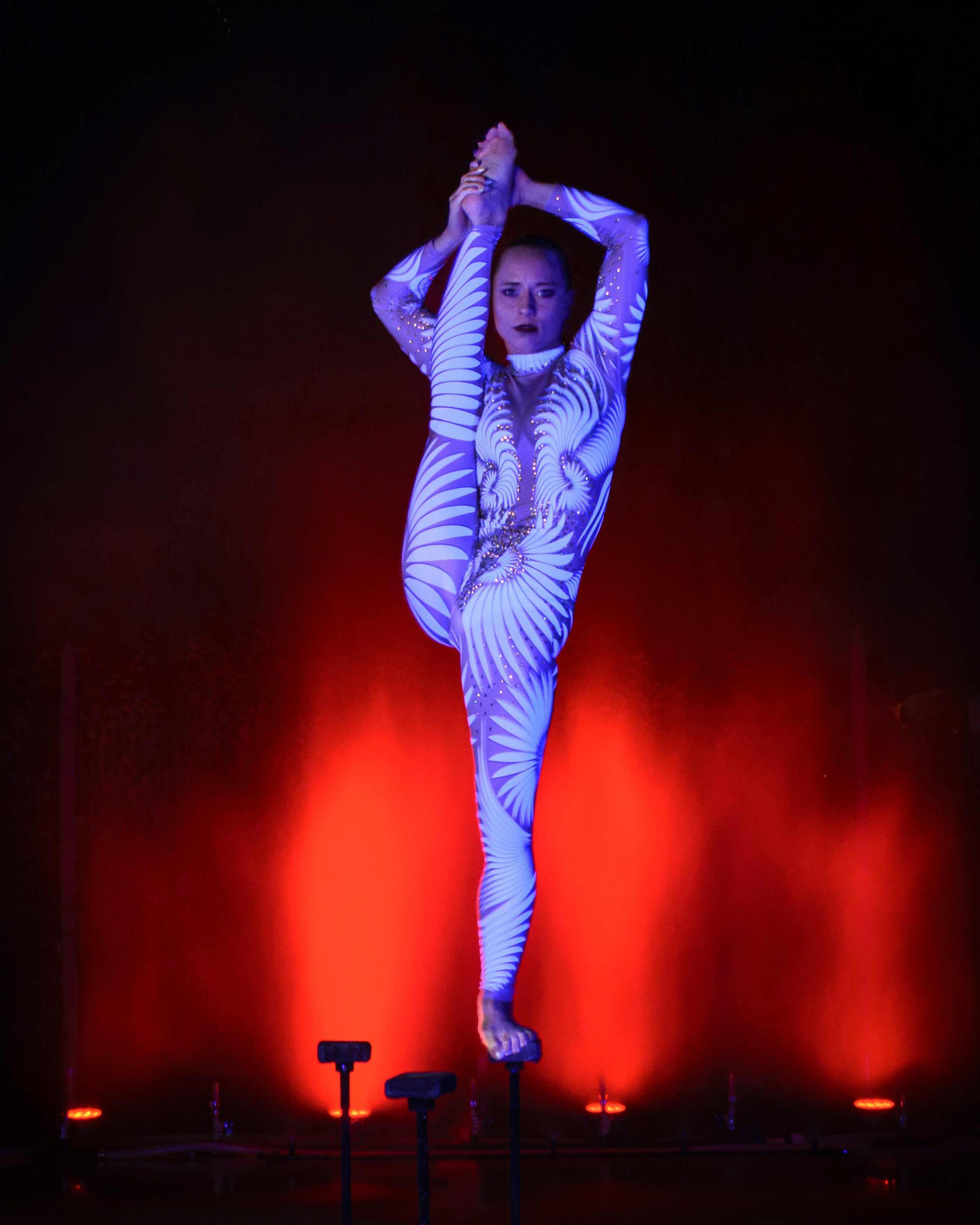 A stunning aerialist and acrobat, Eugenia is a professional circus artist specialising in Aerial Straps, Hand to Hand and Handstands. An innovative performer, she is constantly expanding her capabilities and refining her acts.