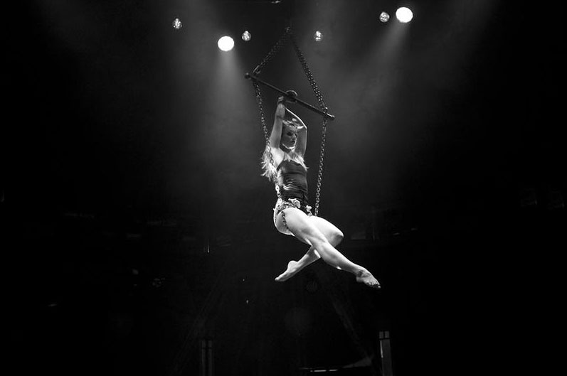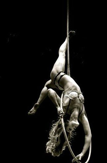 Her performances are an elegant and moving form of poetry; her carefully rehearsed choreographies tell a story that will touch audiences. Each each climb, drop and twirl evokes images of strength and beauty that will captivate and entrance spectators. She can perform on a range of aerial apparatus including: silk, hoop, trapeze (solo or duo), chandeliers and chains, and possesses a range of costumes to suit a variety of events and themes.