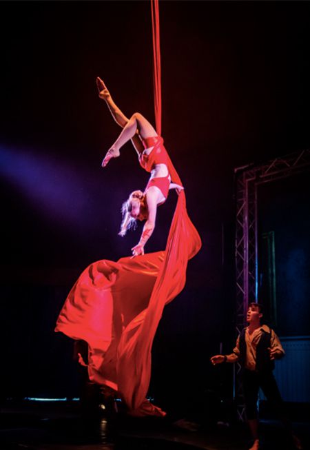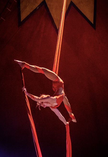 Confident and dynamic, this artist can provide it all, from solo and duo aerial hoop shows, to stunning silk acrobat performances