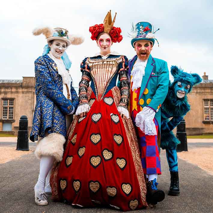 With an impressive selection of special effects make up and hand made theatrical costumes our walkabout characters from Alice in Wonderland are brought to life in immense detail to create an authentic experience for guests old and young.