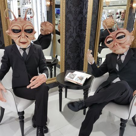 Our roaming characters will appeal to guests of young and old alike at your event as they provide highly interactive entertainment, performing as three aliens who have arrived on Earth to study the human race. Trying their best to go unnoticed, these intergalactic travellers attempt to mimic the gestures and speech of the crowd, mixing and mingling with guests, posing for photos, and doing everything they can to understand the habits and actions of human beings!