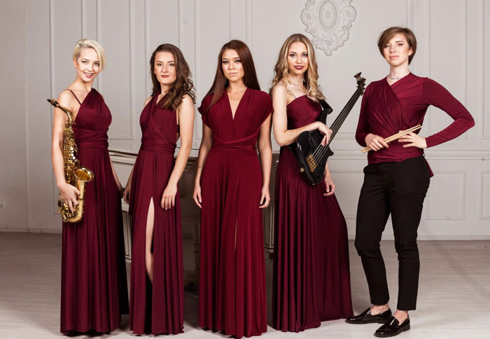 The female jazz musicians are all professionals in their field, graduates from some of the best universities in Moscow and established performers. Together, their bonding of talents results in top quality live music that is guaranteed to impress your guests and maybe even get them dancing.