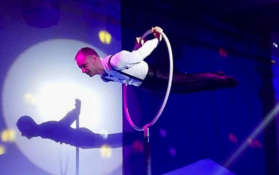 Suspended from the ceiling on a trapeze, our talented male aerial acrobat moves gracefully, reaching into the audience as if from the heavens to provide guests with sweet ambrosia - i.e champagne, cocktails and soft drinks. Lit by fairy lights and wearing a glittering costume and body paint, this male champagne aerialist is the ultimate addition to Christmas parties, New Years celebrations, corporate functions or any occasion looking for a touch of sparkle.