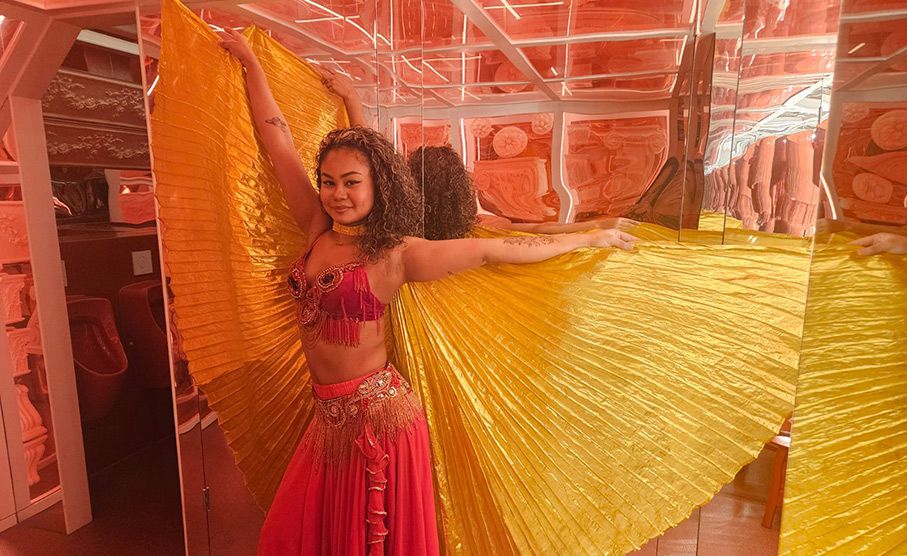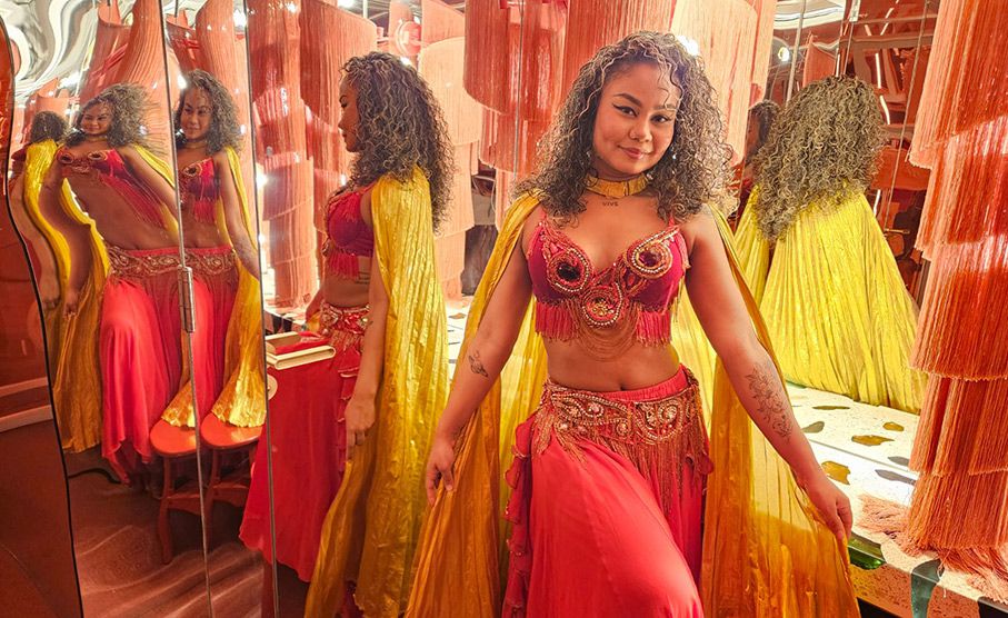 This belly dance performance beautifully blends traditional techniques with modern choreography, creating a dynamic and captivating show
