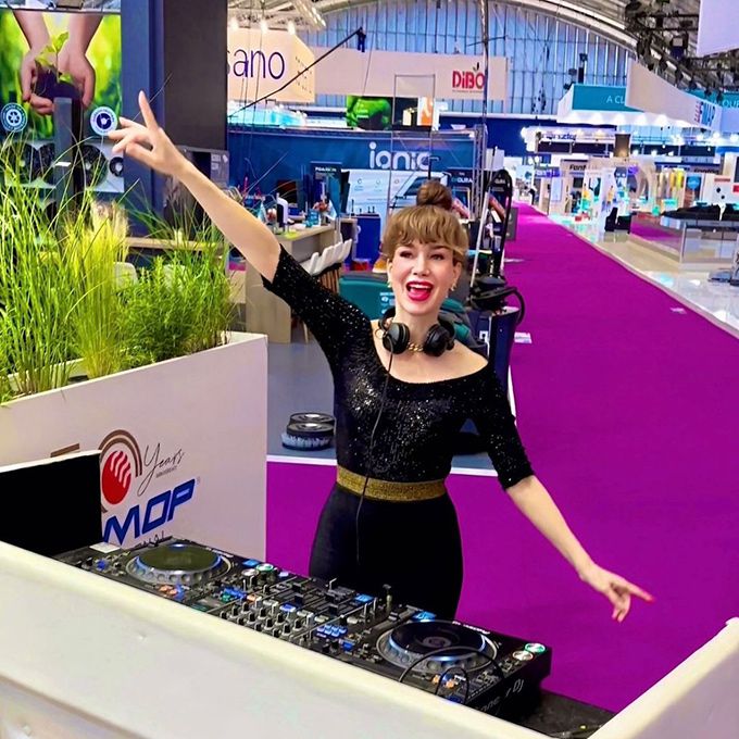 Our female DJ boasts a captivating stage presence and mixes feel-good house music that will get people dancing at any event.