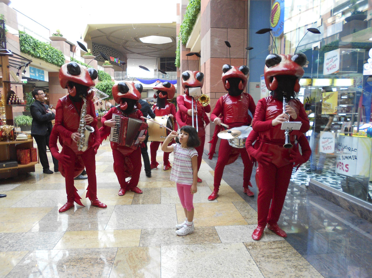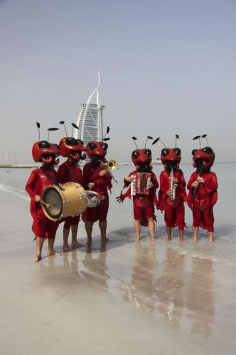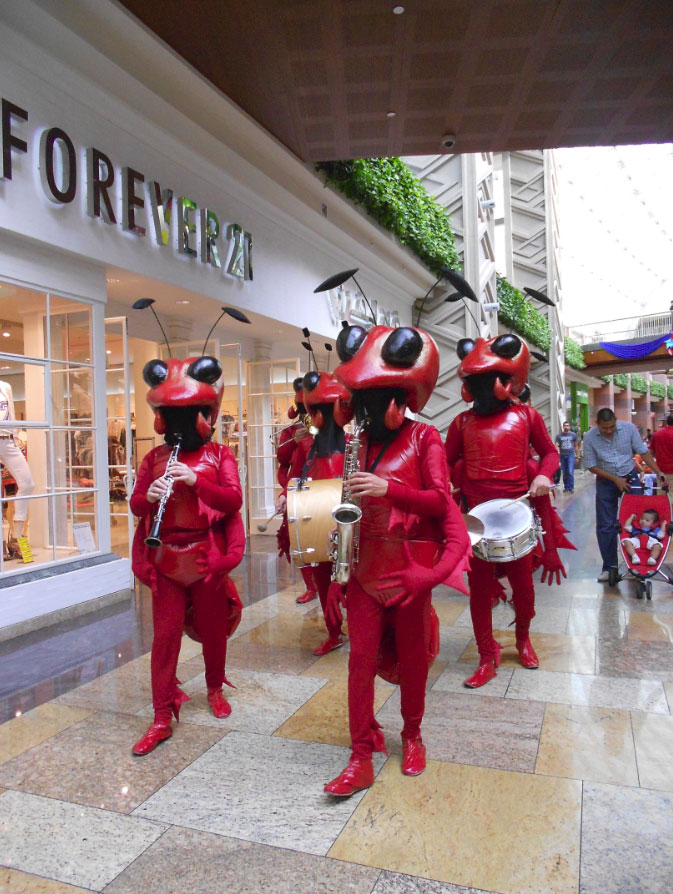 A funky Ants brass section with infectious rhythms. These ‘insectoid characters’, with black eyes and red bodies love nothing more than a good beat and a boogie as they interact with audiences and your guests.