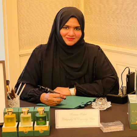 Our talented Arabic and English calligrapher creates a variety of imaginative calligraphy designs, utilising different techniques and materials