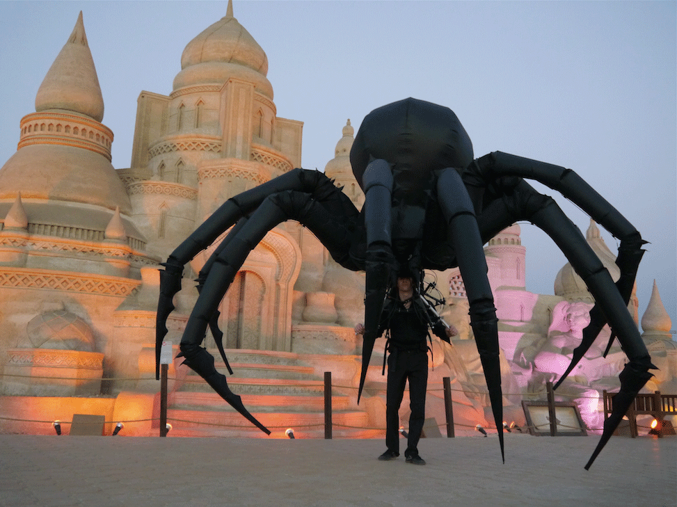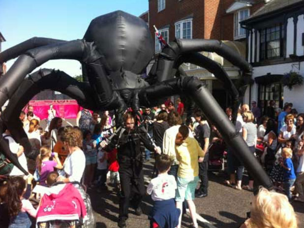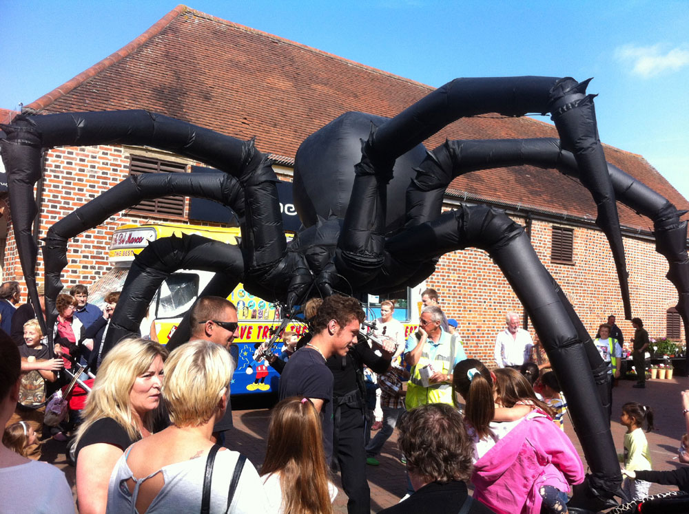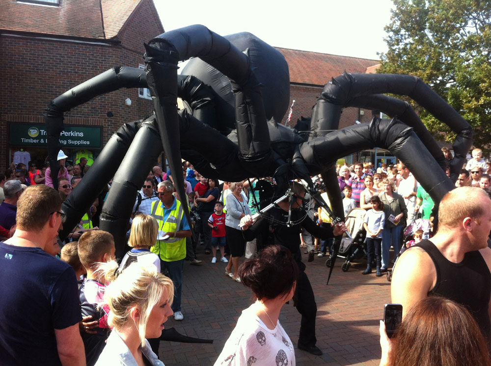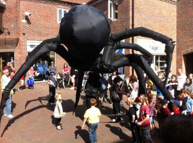 A giant walkabout inflatable spider controlled by a single puppeteer