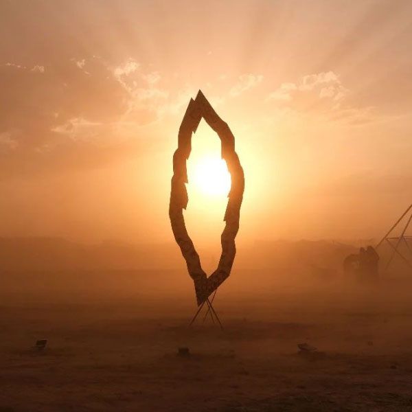 An oasis in the desert! Our programmer can work any visual into the crack of the sculpture, the sky is the limit with this interactive installation