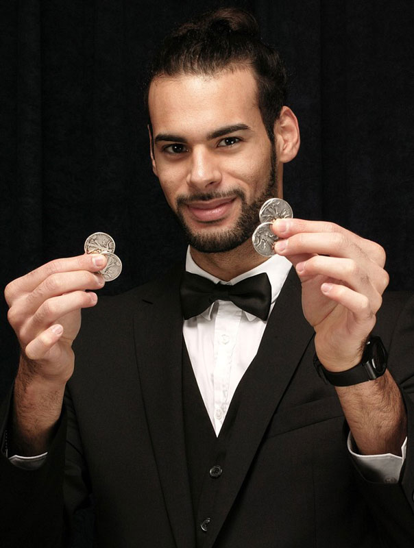Also a talented and in-demand close up magician, his work as an illusionist never goes unnoticed. Able to perform mind-blowing tricks with cards, coins, ropes and fire, our magician and beatboxer can also make objects levitate, appear and disappear before your eyes and read your mind.