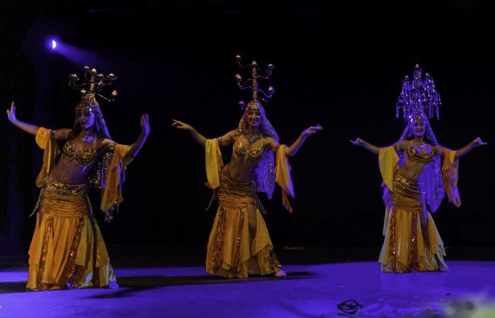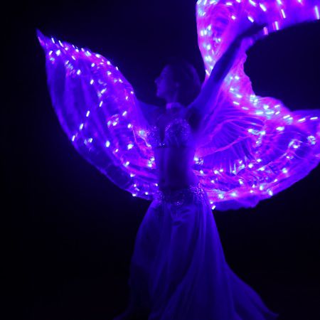 Our performers showcase a variety of choreographies, including dances with silk veils, isis wings, silk fans, swords, candles, drums and LED wings