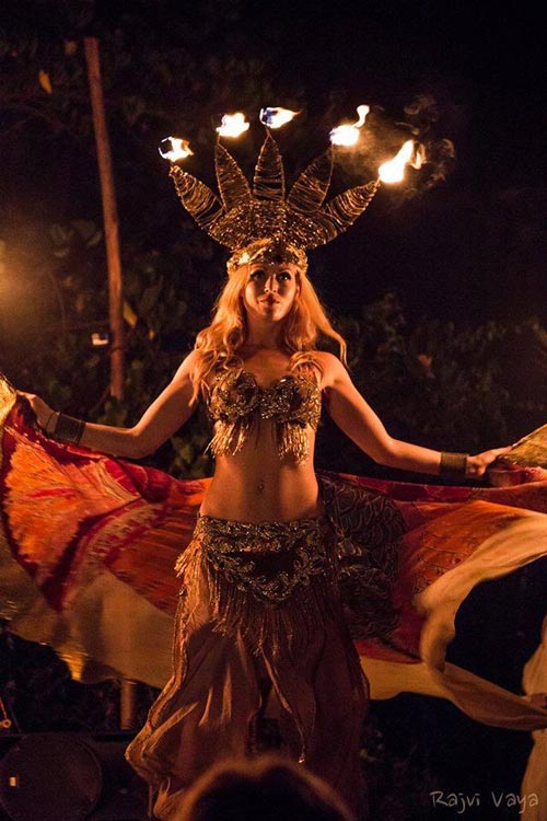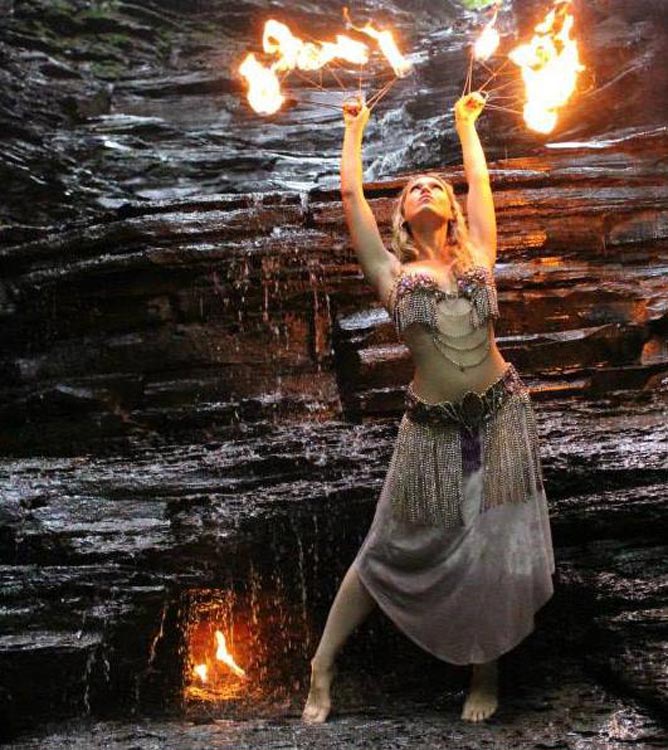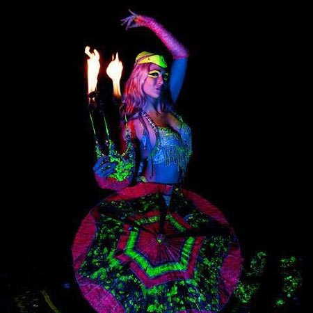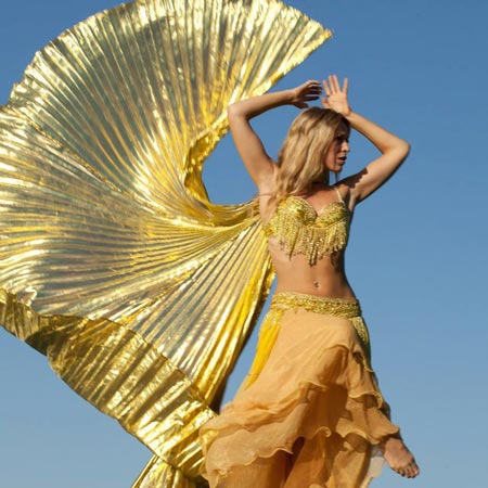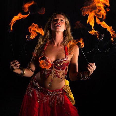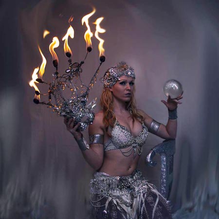 With props such as; a ten-foot golden fire dress, fire Isis wings, crystal ball and magnetic fire masks, this belly dancer boasts a performance that is highly diverse and completely customisable.