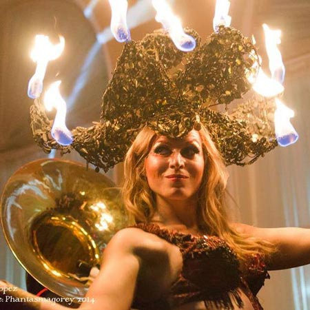A fire goddess in every sense of the word, this international belly dancing contact juggler weaves a fascinating story with her technique, creativity and skill. Notorious for her unique style, costumes and custom props, this New York fire performer is guaranteed to captivate all audiences.