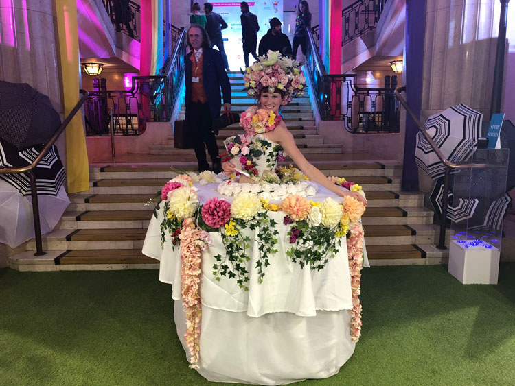 Our Bespoke Human Tables boast food and drink entertainment that is highly interactive, stunning to look at and above all completely tailored to suit your event perfectly. Guaranteed to turn heads wherever they go these strolling tables are the ultimate mix and mingle entertainment as they glide about your venue handing out party favours, appetisers and drinks.