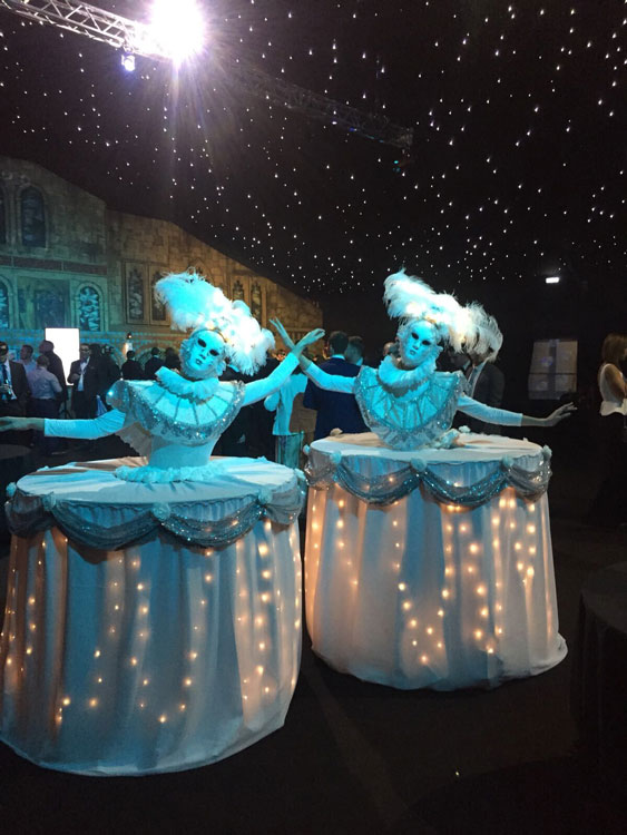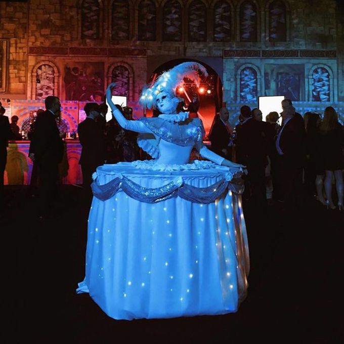 With set themes including, masquerade, floral, and an ice queen character in addition to having the option to completely customise our human tables, these bespoke human tables can be tailored to suit a variety of events and themes.