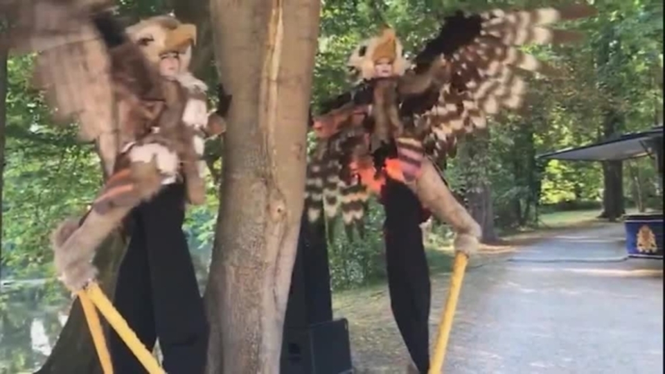 With their long legs, the Big Birds Stilt Walking Act towers high above the crowds like a majestic eagle or falcon. Based in Amsterdam, this bird themed stilt act has some of the most outstanding animal stilt walker costumes we have event seen. Their outfits perfectly replicate birds from head to claw. They have large feathered wings which they can expand outwards, spanning several meters, and reach out to people with.