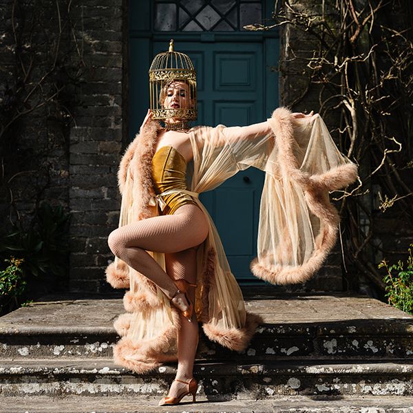Our performers wear exquisitely designed powder room costumes adorned with intricate birdcages, exuding an aura of vintage Hollywood glamour