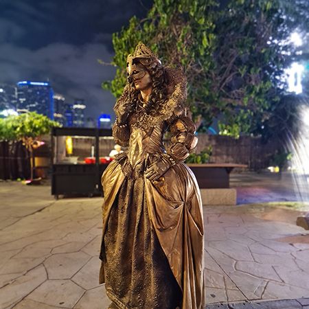 Experienced in the UAE and Ukraine, she creates impressive human statues depicting historical characters, famous people, and diverse cultural styles