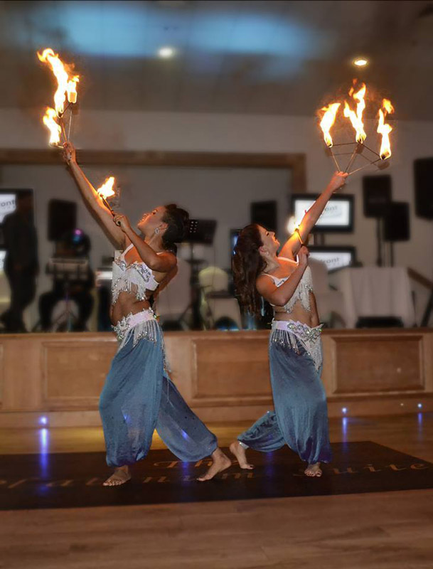 Trained in the art of traditional and modern belly dancing, our Bollywood dance group can tailor their exciting fire act to fit most themes and styles, offering a few customization options that will help your upcoming event or gathering stand out against the competition. Our thrilling fire dance show creates a performance that's utterly unique and showcases amazing feats of precision, dedication, and skill. An exciting live dance show that will keep your guests talking for months. Our Bollywood dancers can be booked separately or incorporated into an assortment to create a full blown fire dance experience.