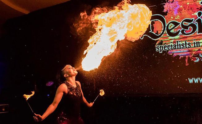 Our exceptional Bollywood dance group will captivate audiences at your special occasion with a dazzling and stunning fire dance show. Our skilled Bollywood dancers will entertain guests by creating an eye opening, on the edge of your seat experience that will send a fiery atmosphere throughout your event as our fire act and live dance show encapsulates around our Bollywood dancers' seductive belly dancing routines. A risky but worthwhile performance that will surely leave a lasting impression on your guests as they want on with amazement.