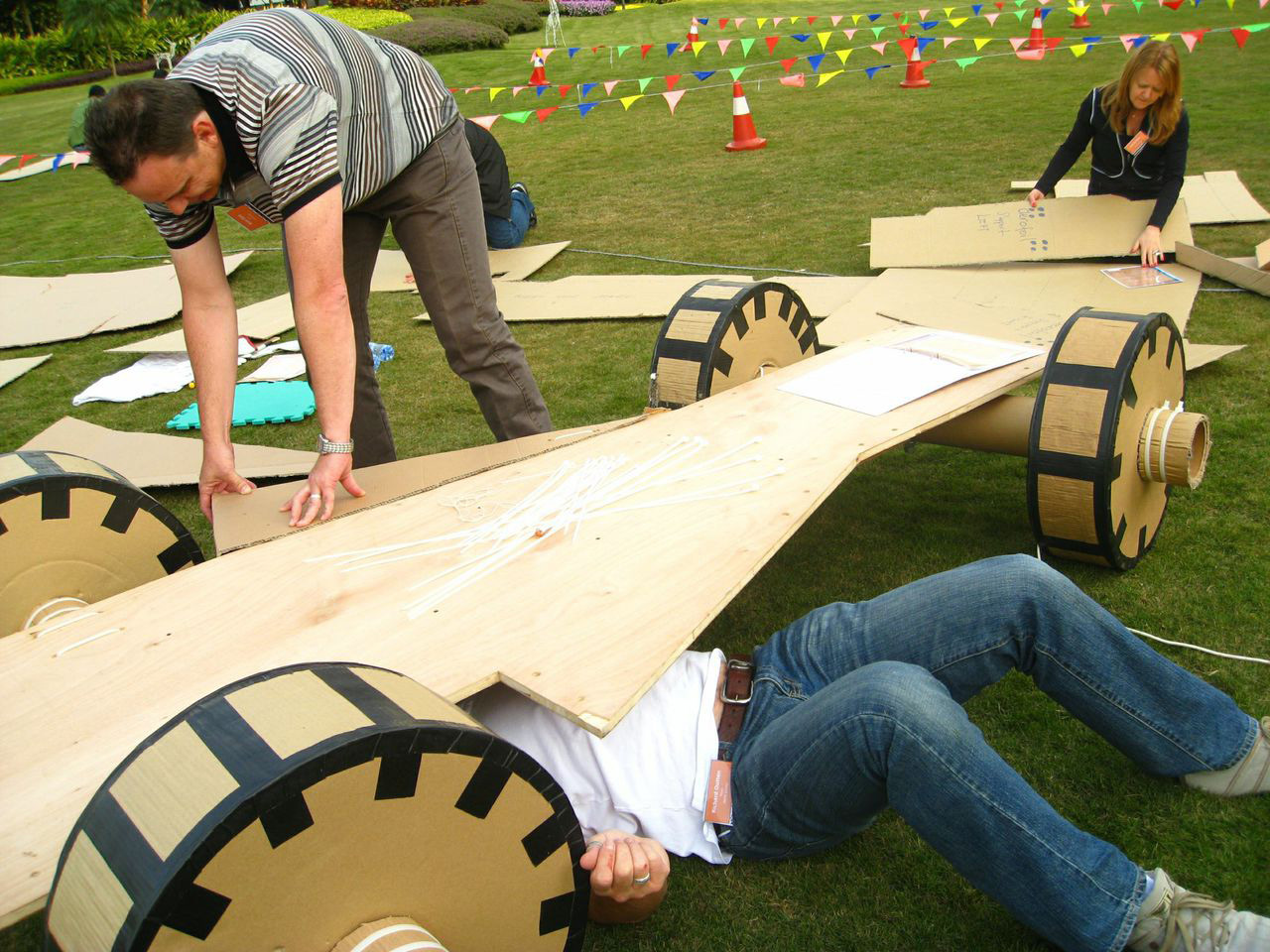 This teambuilding set-up tests the communication skills, collaboration and resourcefulness of your team as they construct the ultimate model kit — an almost full scale racing car! Using time effectively is paramount for the determined teams.