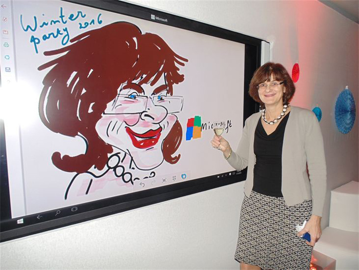 The event artist is incredibly versatile, making her a top recommendation for your event. She is able to draw on branded paper for corporate events, she is available as a digital caricaturist creating her drawing on a tablet and emailing the finished product or printing is on high gloss paper. The portrait artist also offers workshops to teach her cartoonist skills to others.