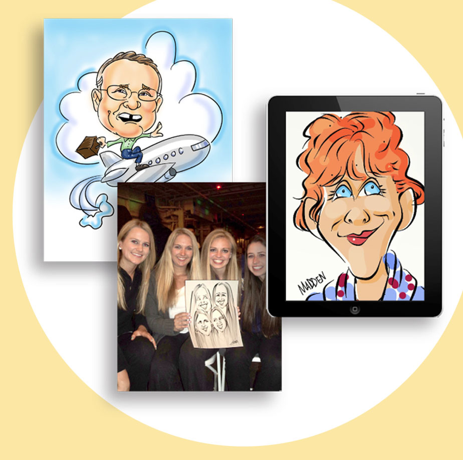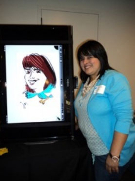 Live digital caricatures add that “Wow!” factor to your event. Drawings are done directly on an iPad or other digital tablet. Draw a crowd to your tradeshow booth, promotion or add fun to any event with this fascinating art form. You can always depend on her professionalism, an engaging performance and excellent drawings. A large flat screen monitor allows the crowd to watch as drawings unfold. Drawings are printed on the spot making this an inviting attraction. Drawings are printed on 4” x 6” photo paper or larger sizes by request.